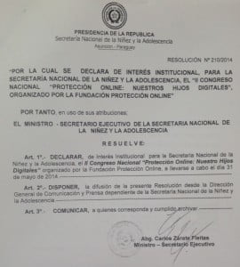 La Fundación Protección Online (FPO), con presentación del Instituto de Diseño y Tecnología y el apoyo de la Universidad Autónoma de Asunción organiza por segundo año el Congreso denominado «Nuestros Hijos Digitales». Expertos en Paraguay presentarán y analizarán las nuevas problemáticas a las que están expuestos los niños y jóvenes como el Ciberacoso, perfiles falsos, Sexting, Grooming, Virus, Cyber estafas, robo de información y muchos más.
